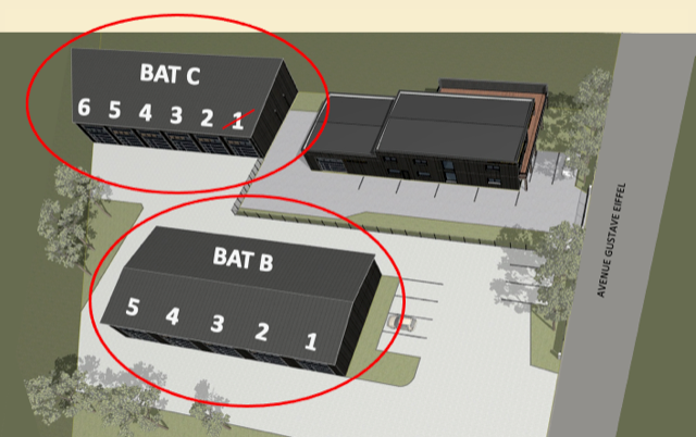Surface totale : Locaux de plain-pied (66, 81 et 123 m²) + mezzanine (33, 40 et 75 m²)